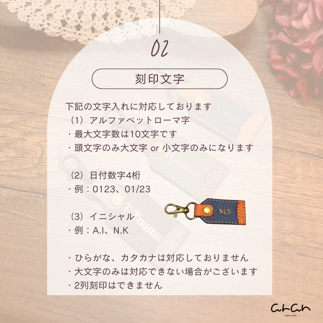 自分用やプレゼントにぴったり、刻印レザーキーホルダーです。